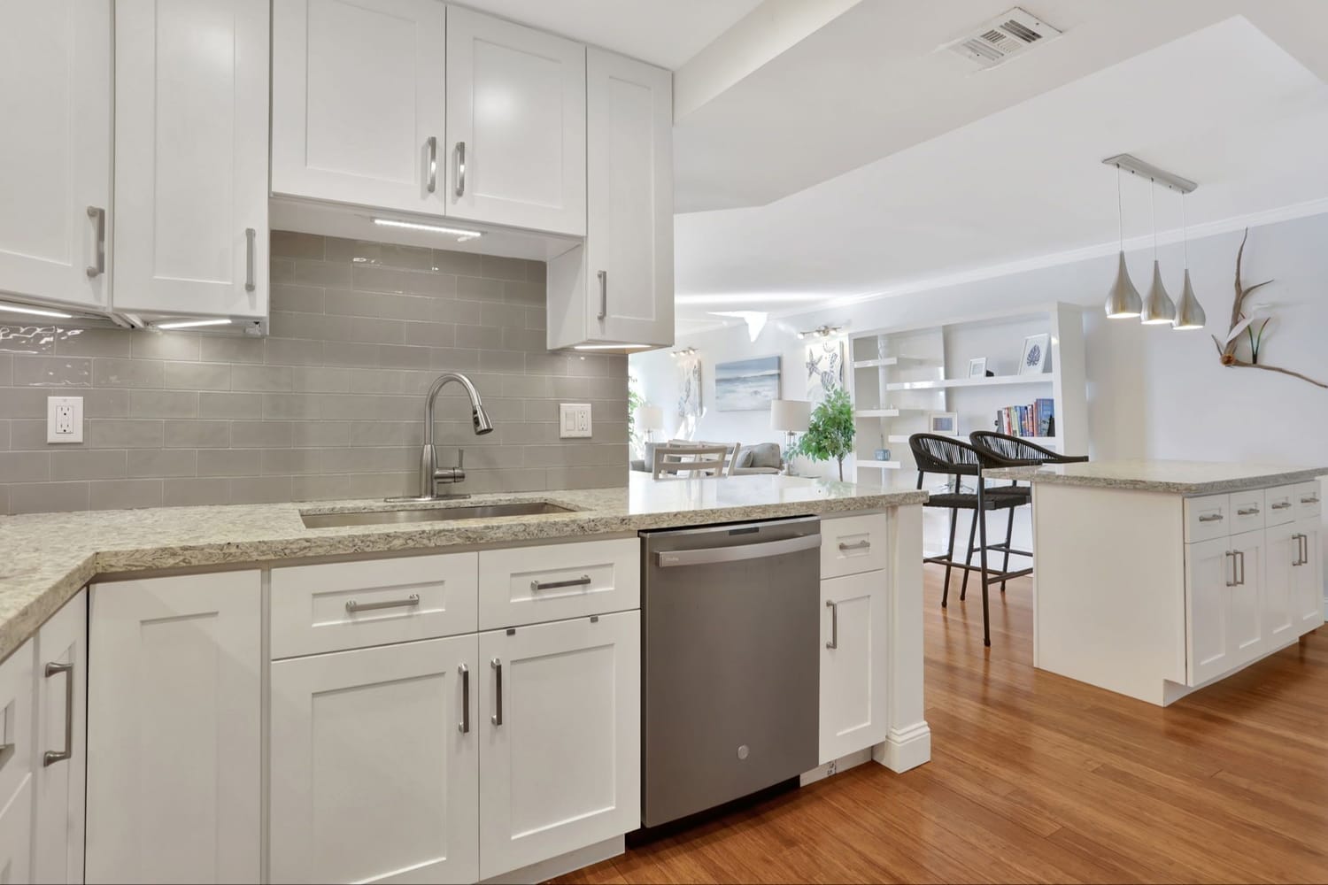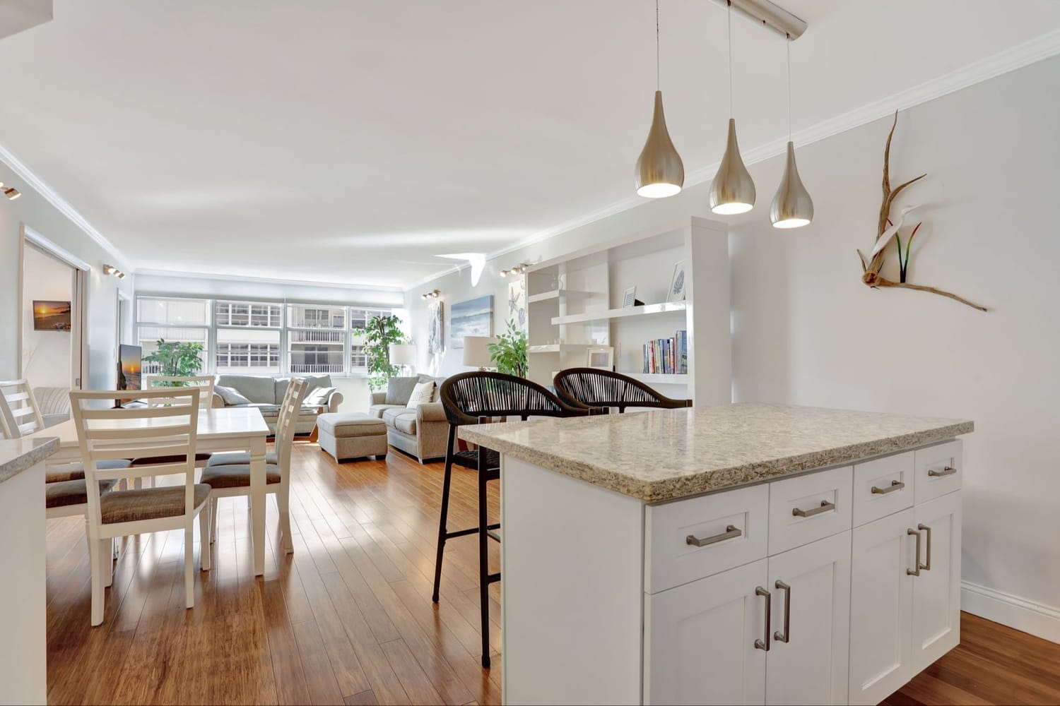 Waterfront living at its finest. Fully Furnished and Renovated 2-bedroom 2-bathroom condo directly located on Middle River in Fort Lauderdale. Relax in this modern sunlit condominium featuring bamboo flooring throughout, impact-resistant windows and doors, and an open-concept kitchen with Quartz countertops, stainless steel appliances, and a custom island—ideal for entertaining. Experience the ease of a combined washer and dryer unit.