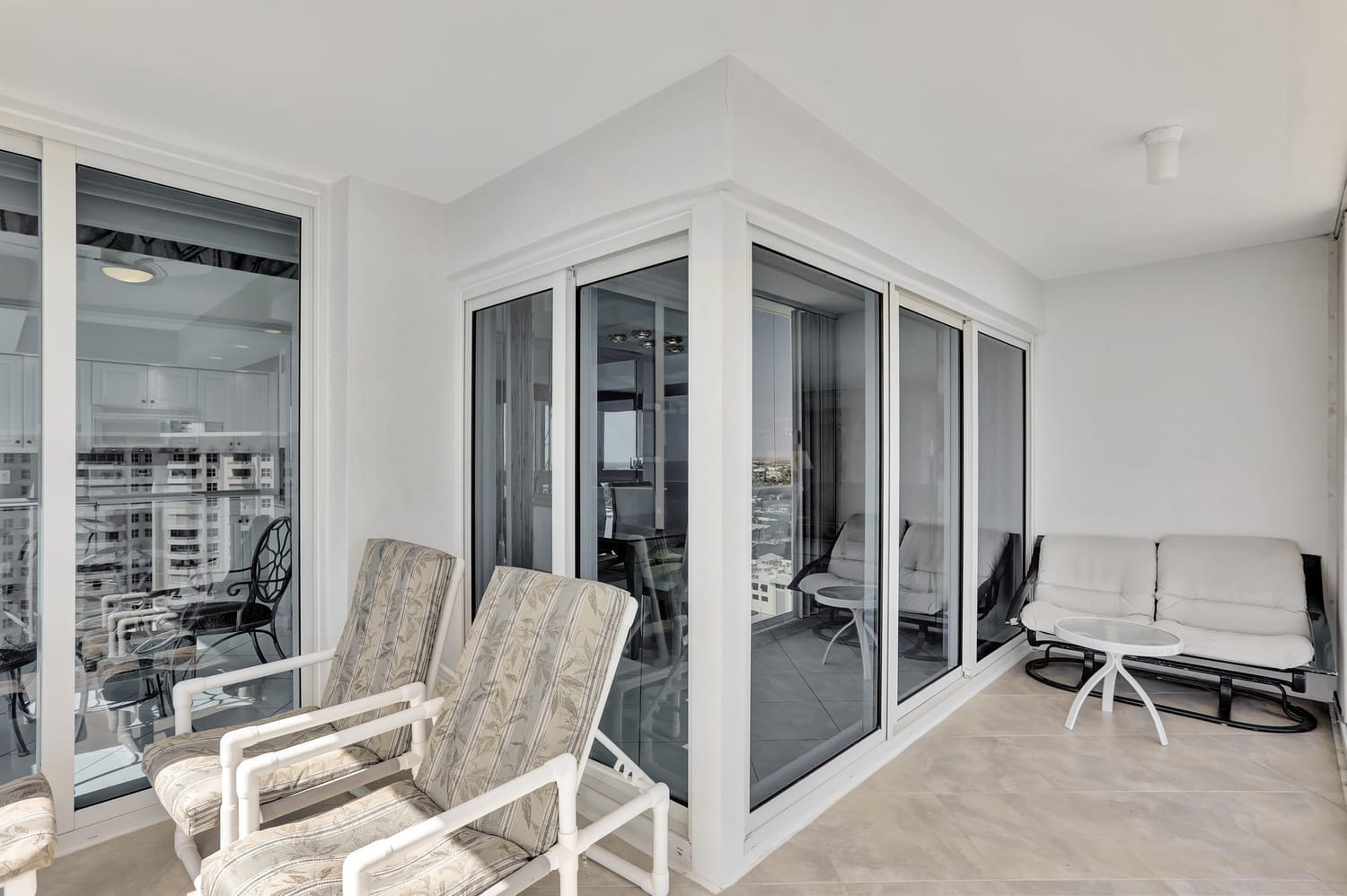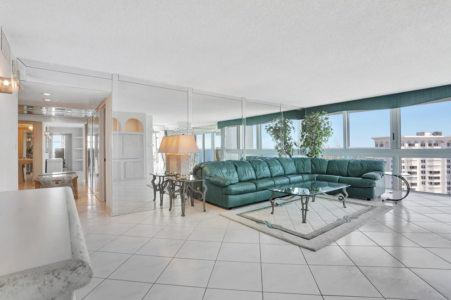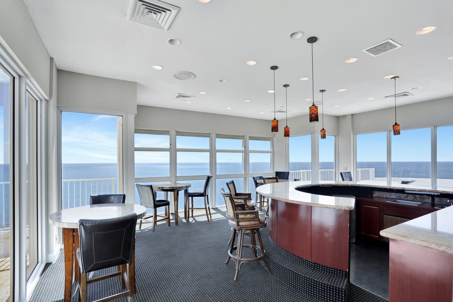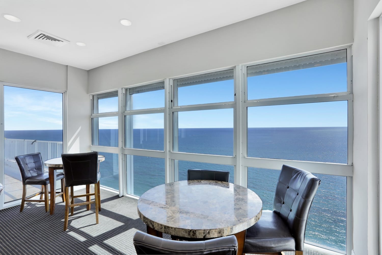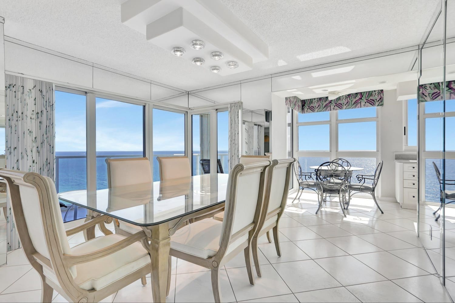 This rarely available 2-bedroom, 2.5-bath corner unit offers direct, unobstructed views of the Atlantic Ocean, this expansive 1,652 sq ft residence truly feels like you're living on a cruise ship—surrounded by water, with the horizon stretching endlessly ahead from every room. Lots of natural light pours in through hurricane-impact windows, showcasing the white ceramic tile floors throughout the living spaces and drawing your eyes out toward the wraparound balcony and up toward the Atlantic Ocean.