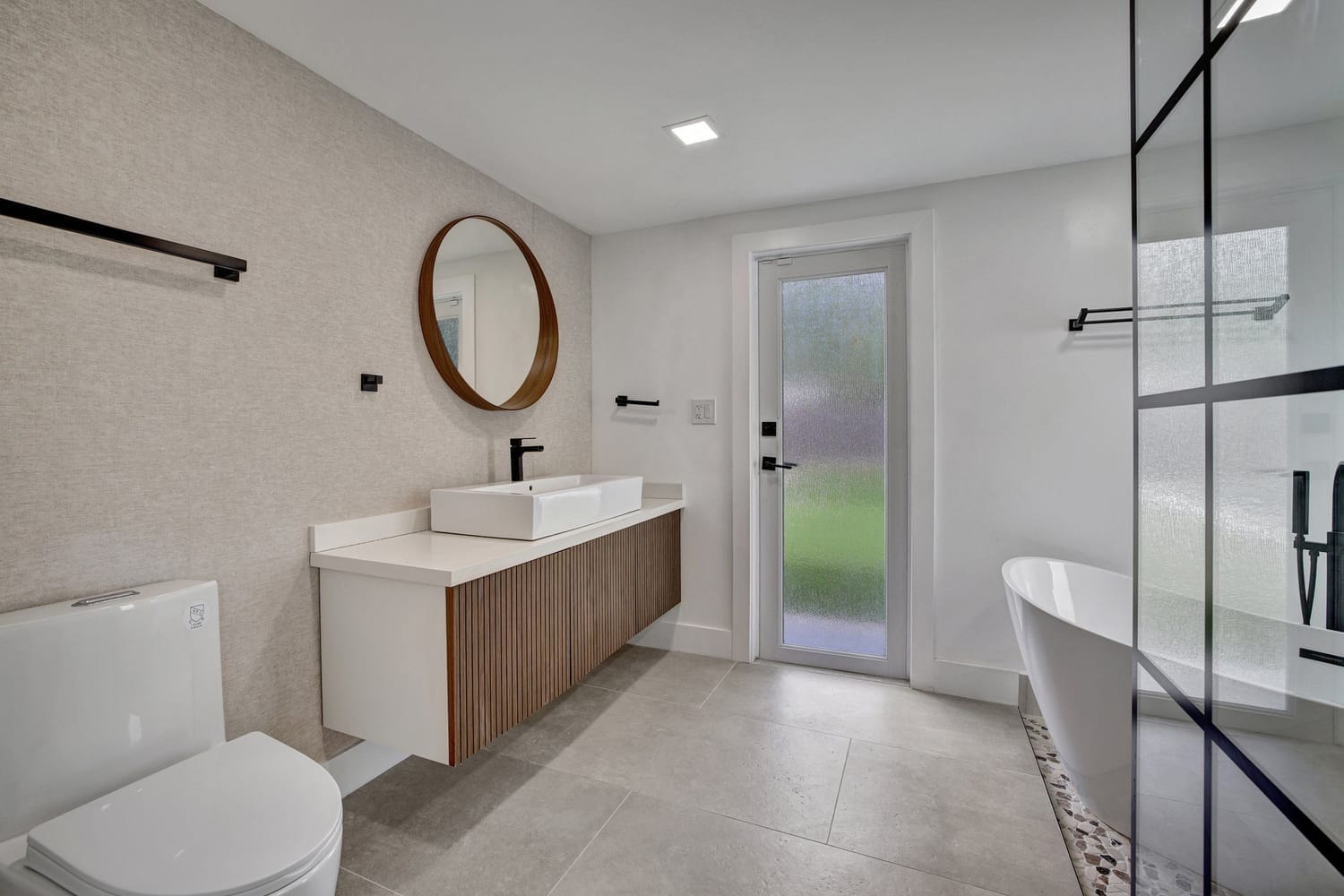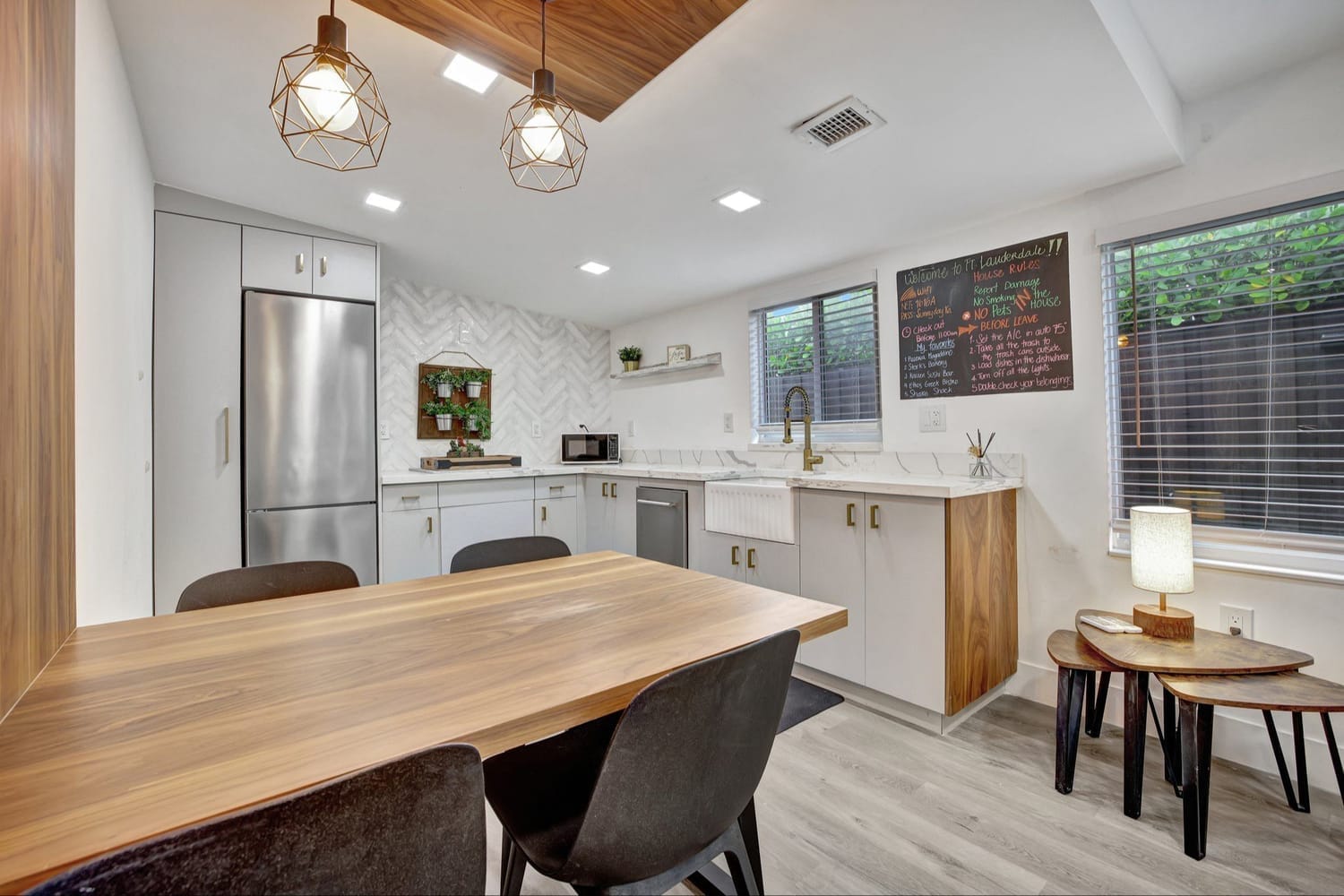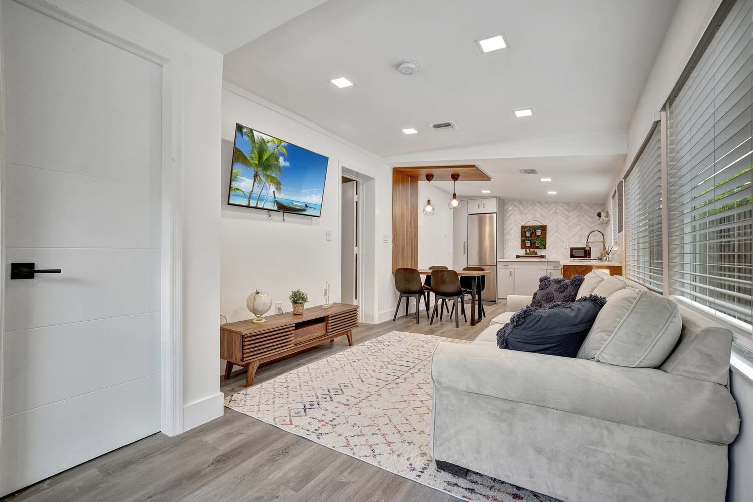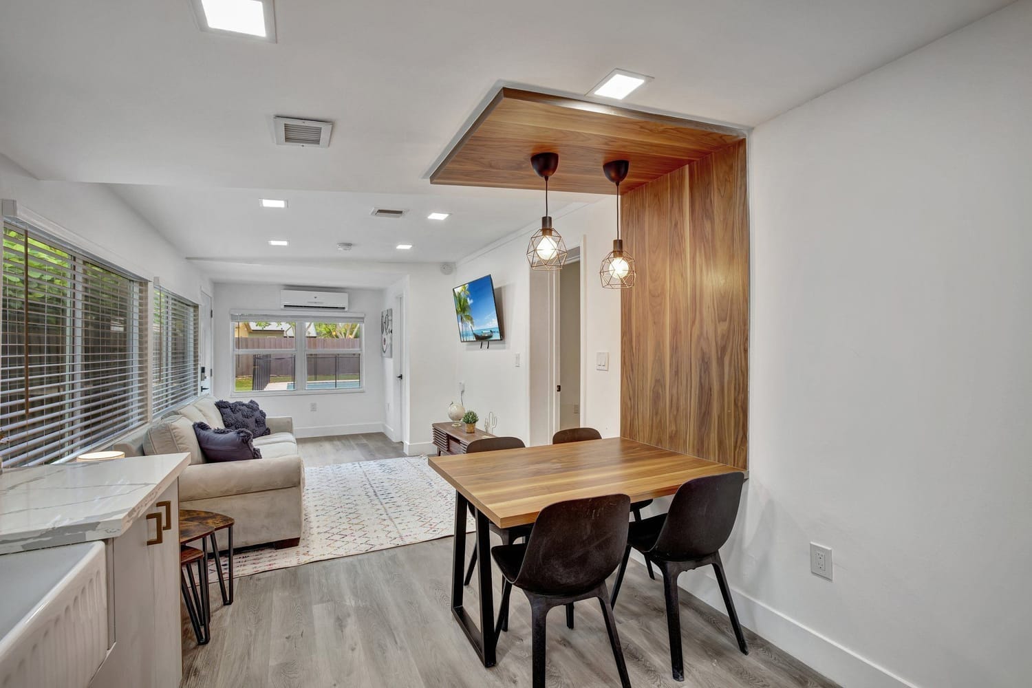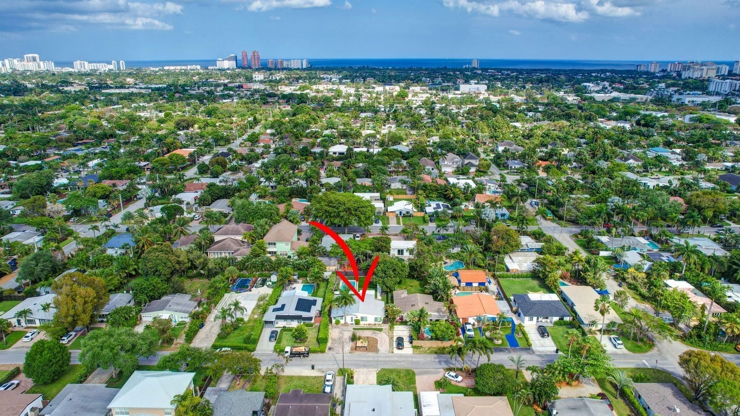 Introducing one of the largest homes in the sought-after Poinsettia Heights neighborhood! This stunning 4-bedroom, 3-bathroom residence has undergone a complete renovation, boasting brand new kitchen and bathrooms, along with a sparkling NEW pool. Enjoy the peace of mind provided by the new AC system and a durable aluminum roof with an impressive lifespan of 50 years. Hurricane impacts windows and doors throughout. Primary bathroom includes a luxurious freestanding bathtub, a separate waterfall shower head, and a sleek floating vanity adorned with contemporary finishes. A unique feature of this home is its full 1-bedroom, 1-bathroom private suite with a separate entrance and its own kitchen, perfect for guests or extended family members.