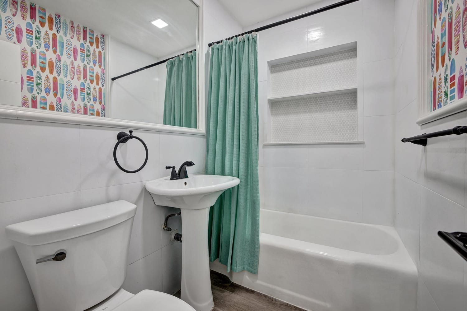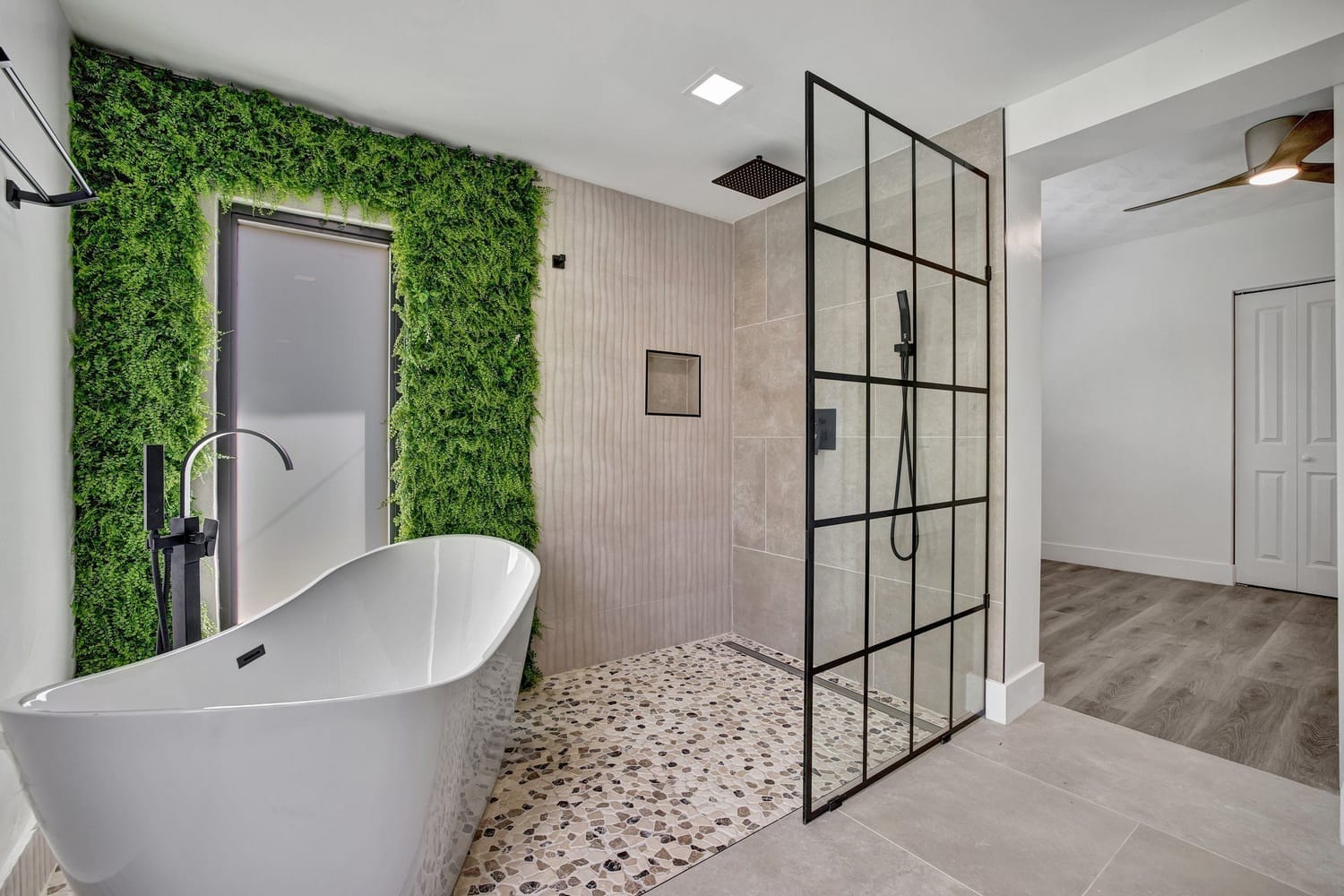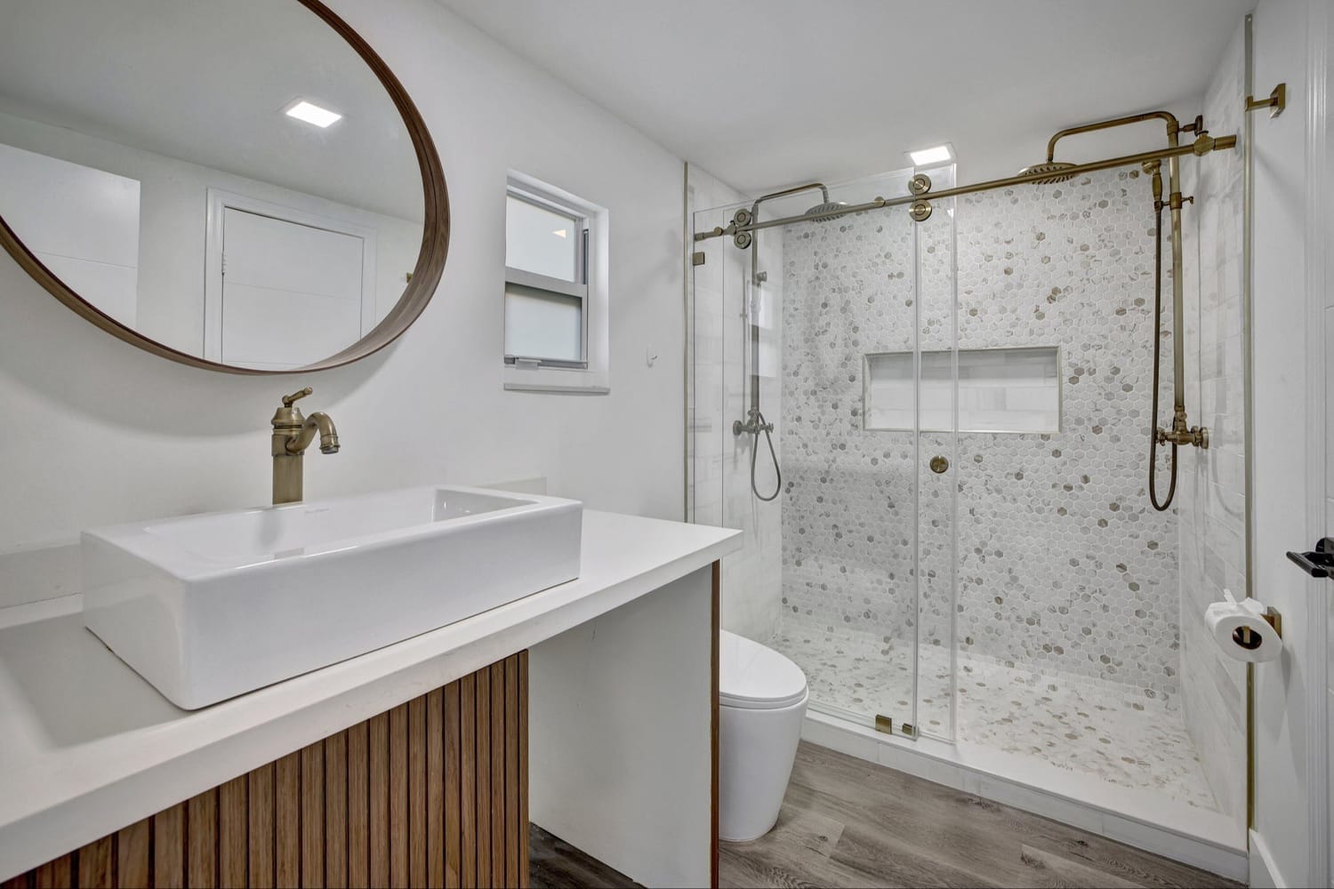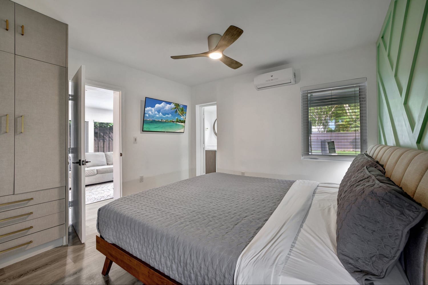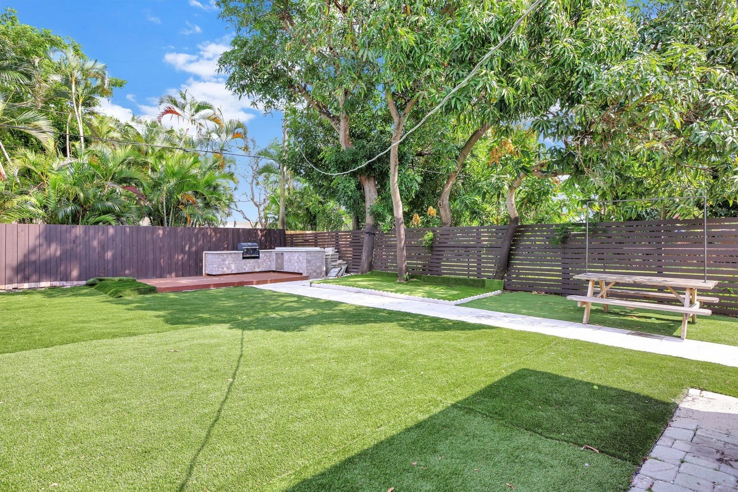 Introducing one of the largest homes in the sought-after Poinsettia Heights neighborhood! This stunning 4-bedroom, 3-bathroom residence has undergone a complete renovation, boasting brand new kitchen and bathrooms, along with a sparkling NEW pool. Enjoy the peace of mind provided by the new AC system and a durable aluminum roof with an impressive lifespan of 50 years. Hurricane impacts windows and doors throughout. Primary bathroom includes a luxurious freestanding bathtub, a separate waterfall shower head, and a sleek floating vanity adorned with contemporary finishes. A unique feature of this home is its full 1-bedroom, 1-bathroom private suite with a separate entrance and its own kitchen, perfect for guests or extended family members.