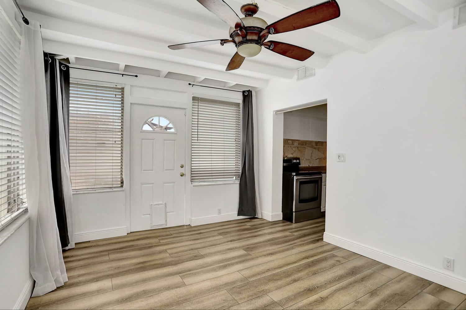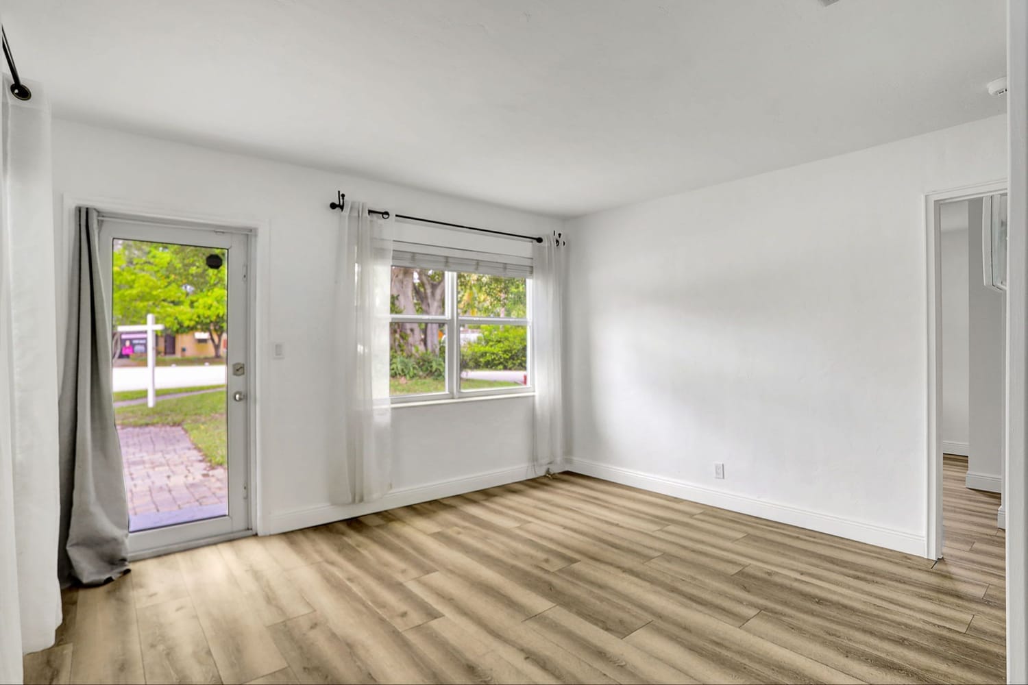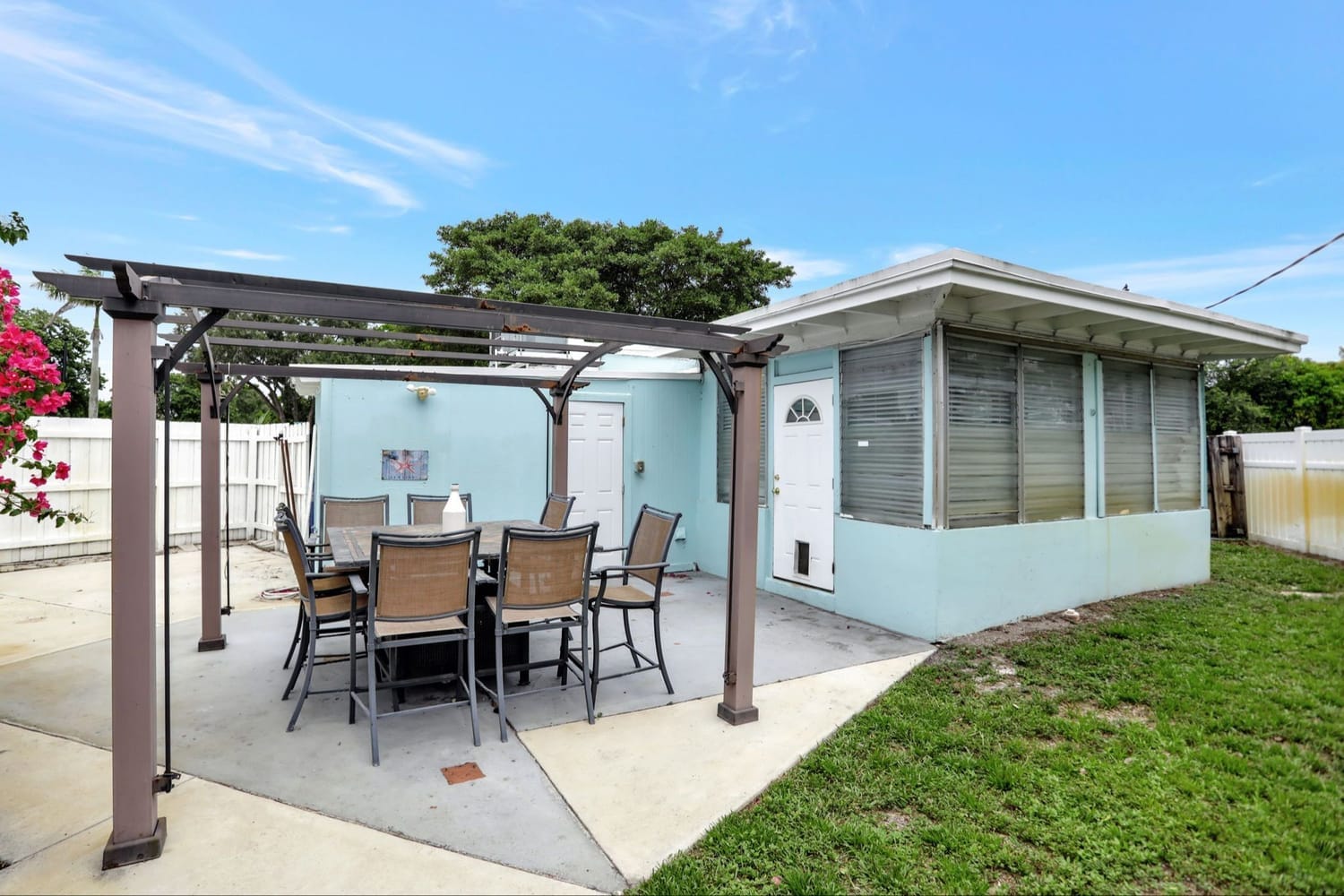 Welcome to this quaint 2 Bedroom 1 Bathroom home plus family room nestled in the Cresthaven neighborhood of Pompano Beach. New modern flooring throughout, impact windows and doors in the main house makes it light and bright. Newer A/C and electrical panel. The layout seamlessly flows into the cozy living spaces, perfect for relaxation and entertainment. You'll enjoy the lovely corridor kitchen that leads from the living room to the family room. The fenced backyard provides a private oasis for gatherings with loved ones or cherished pets which features a charming back patio and pergola, ideal for enjoying the outdoors. Includes ample space for gardening and growing your own fruits and vegetables. Home features a large laundry/storage room for all your storage needs. Additionally, the property features a carport and driveway to conveniently fit 2 vehicles. It is located right next to the park that has a pavilion, playground, basketball court, and beach volleyball court. Tons of restaurants, shopping, and entertainment surrounds the neighborhood such as AMC Theatre, Chic-fil-A, Wholefoods, and so much more! Pompano Beach own beach and pier are less than 10 minutes driving distance. The home is As-Is and ready to sell.